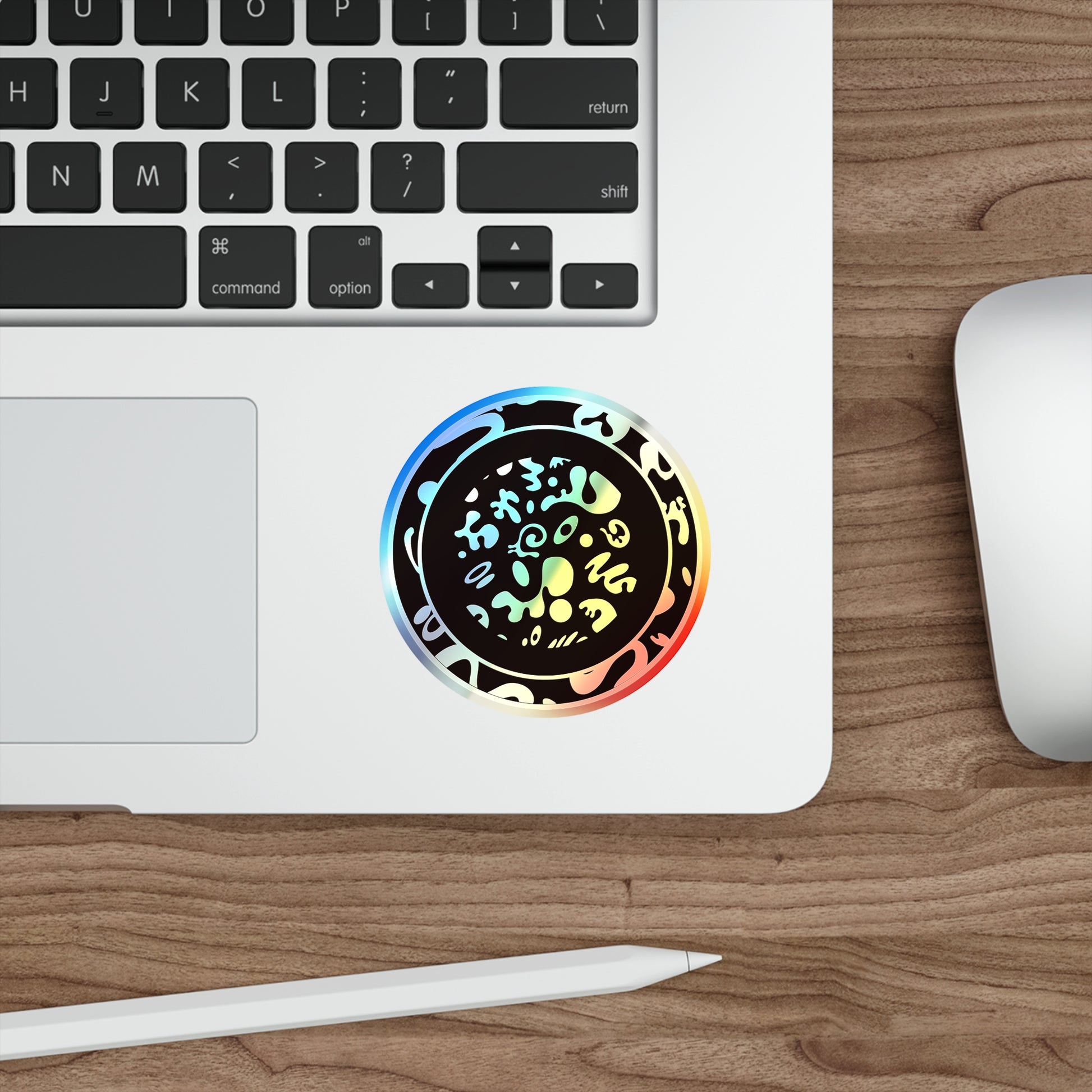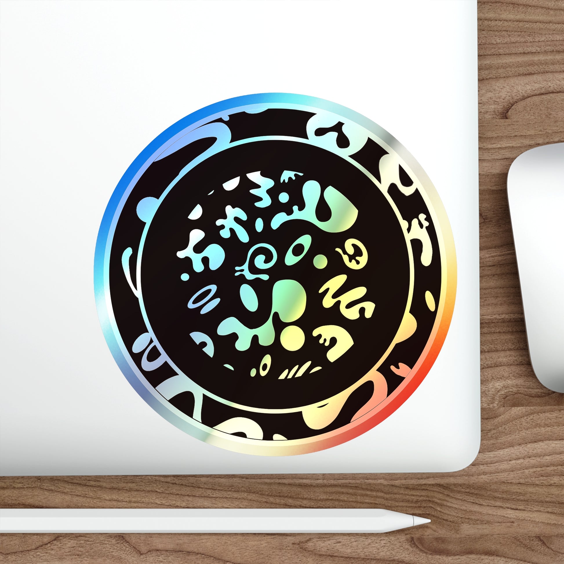 .: Custom holographic stickers with a shiny rainbow effect