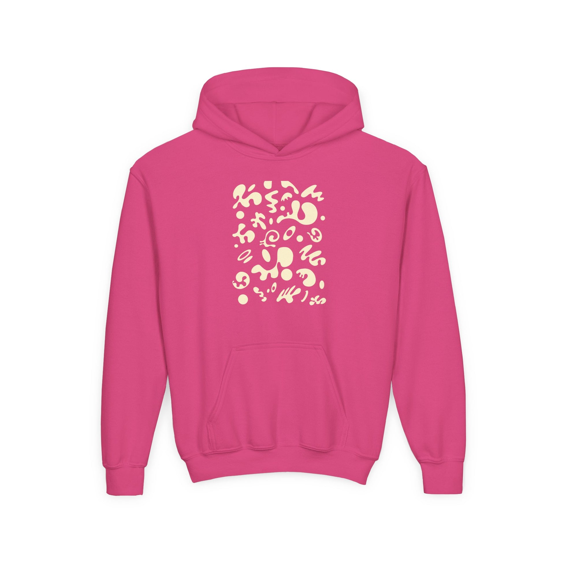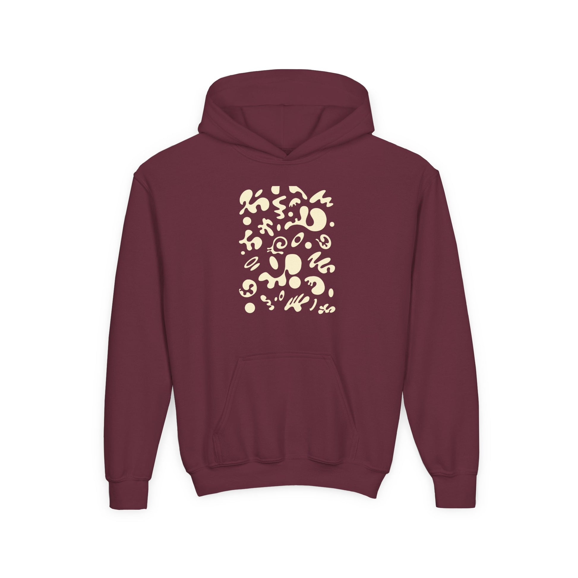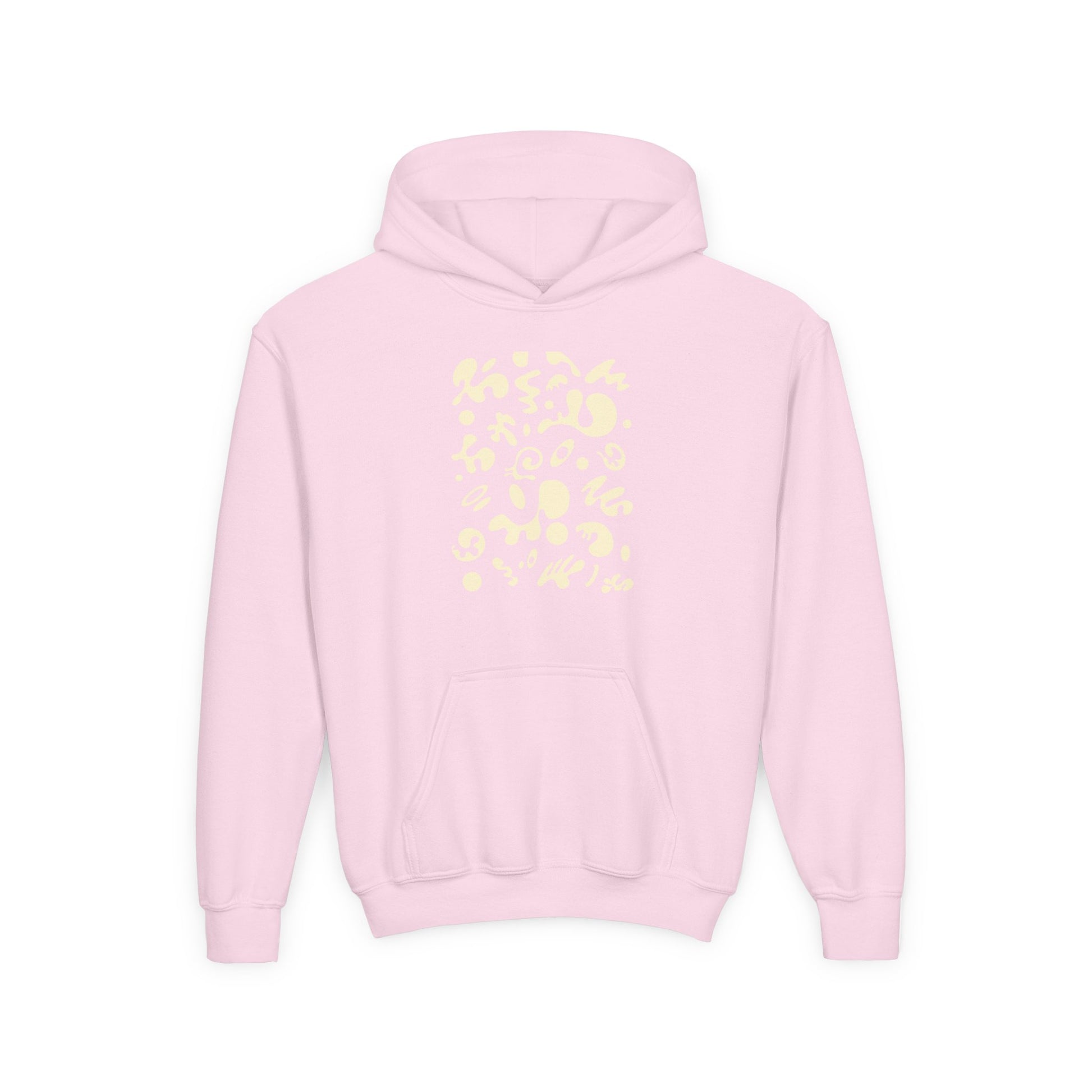 The youth blend hooded sweatshirt is made of ultra-soft, preshrunk fleece that feels wonderful against the skin. The garment is 50% cotton 50% polyester with reduced lint buildup. This makes an excellent combination for printing. The front has a kangaroo pocket big enough for both hands. The neck is reinforced with twill taping.