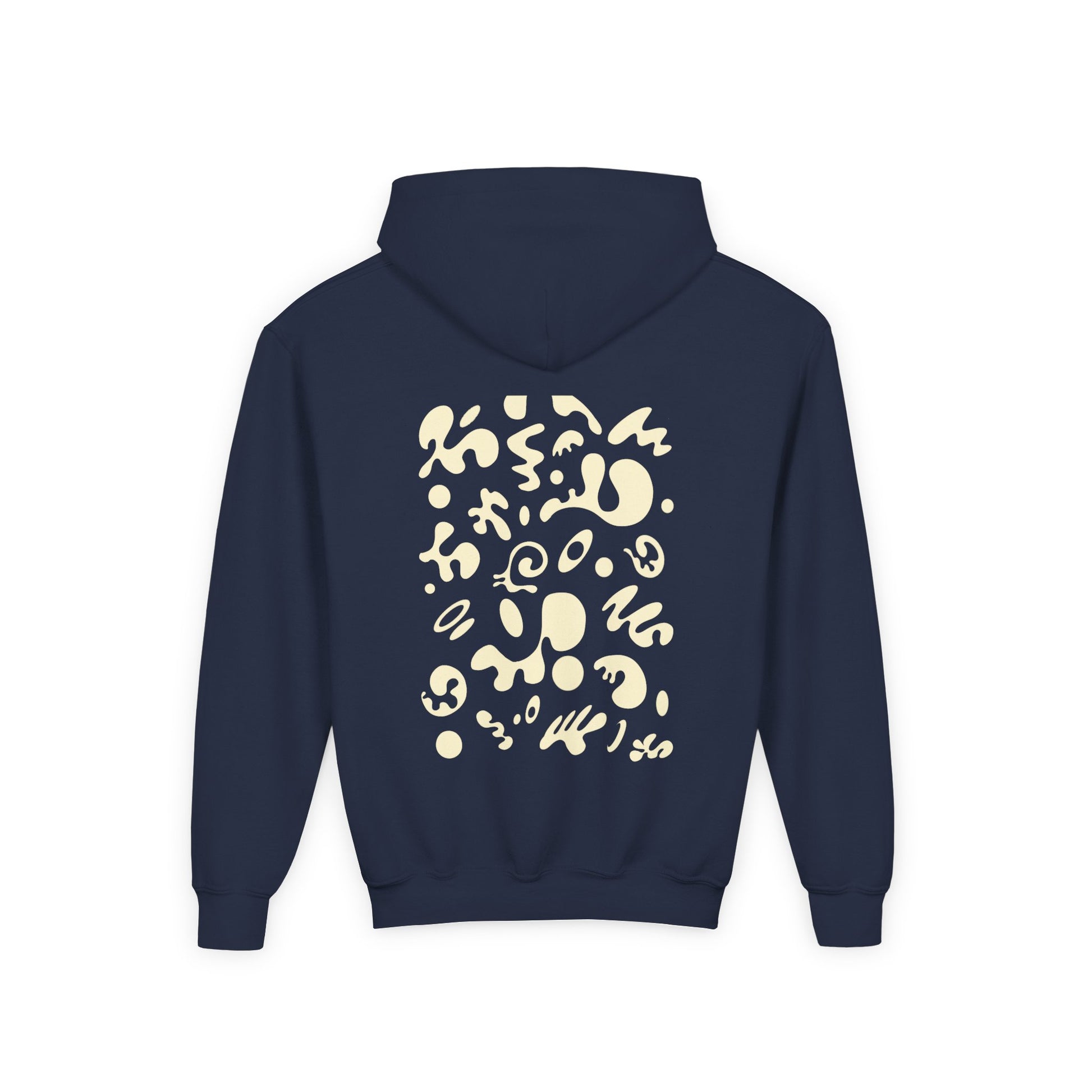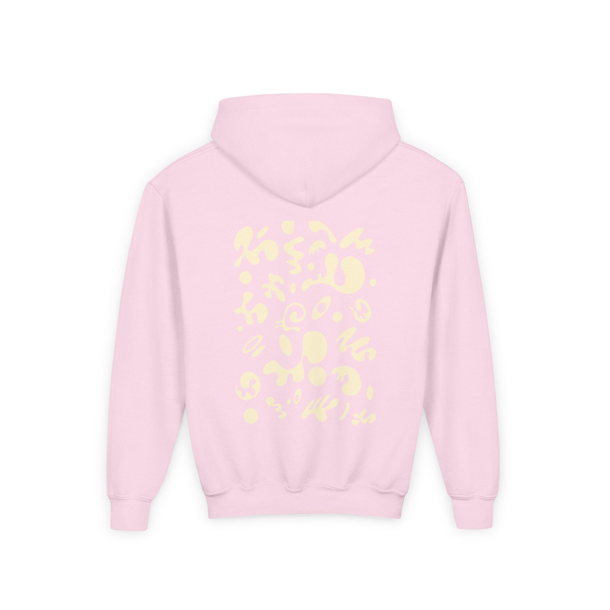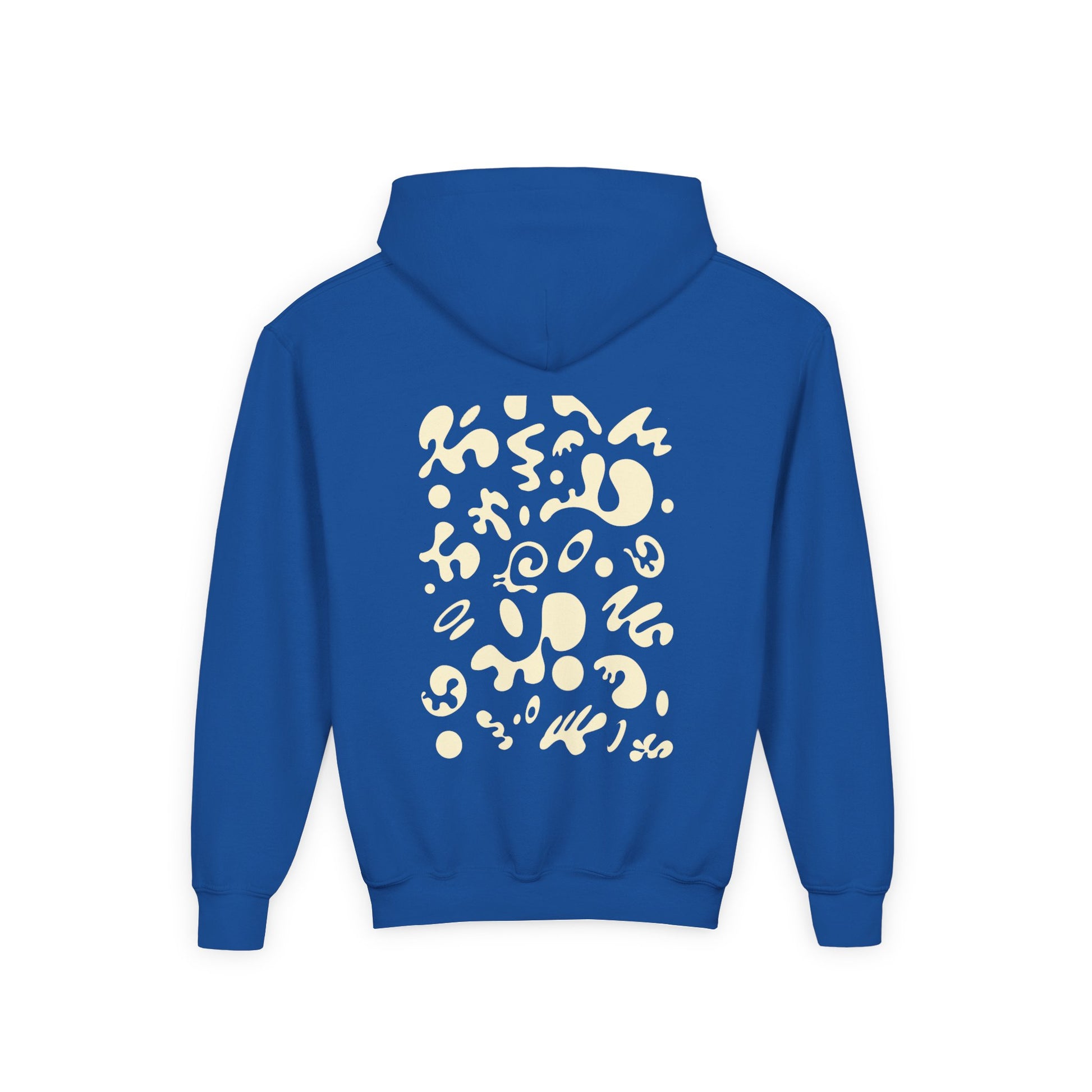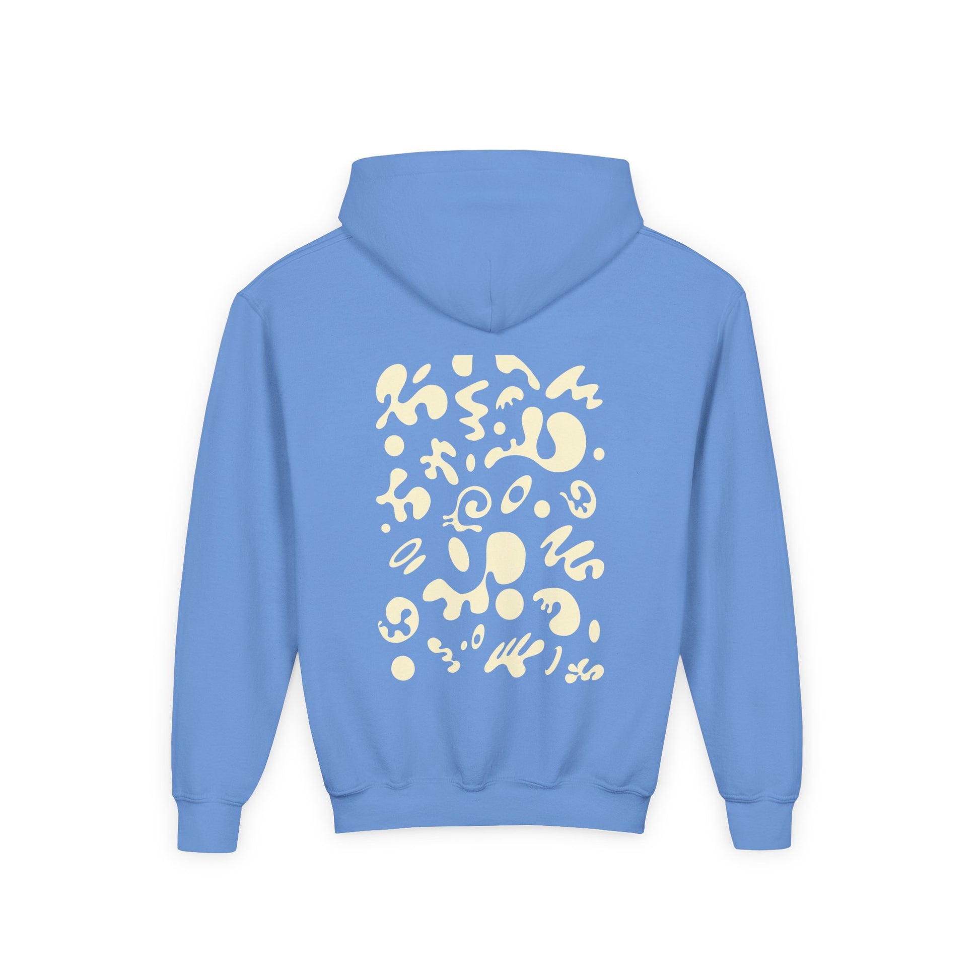 The youth blend hooded sweatshirt is made of ultra-soft, preshrunk fleece that feels wonderful against the skin. The garment is 50% cotton 50% polyester with reduced lint buildup. This makes an excellent combination for printing. The front has a kangaroo pocket big enough for both hands. The neck is reinforced with twill taping.
