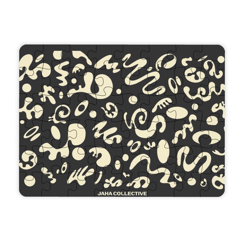 How Jigsaw Puzzle Printing Works: Bringing Your Designs to Life Our specialized jigsaw puzzle printing process ensures a high-end, bespoke product that showcases Jaha's unique designs in full high definition color. Thick, shatterproof plastic is molded into shape, and designs are directly printed onto the surface. The inks fuse deep into the material, guaranteeing that designs won't fade, peel away, or scratch off. The print wraps around the curved edges, creating a contemporary 3D effect. With double-sided printing, the reverse side features an edge-to-edge print, while the top design enjoys a wrap-around effect. Carefully cut pieces are presented in a recyclable tin box with a customized lid featuring your design.