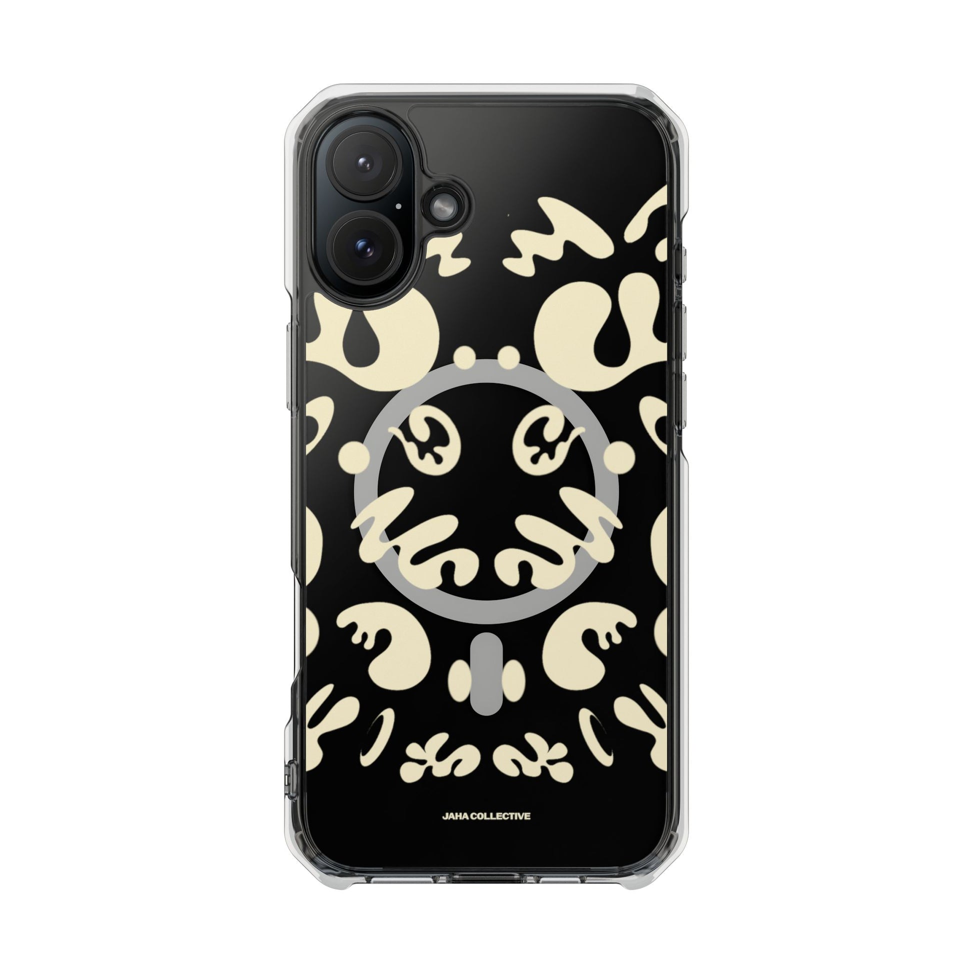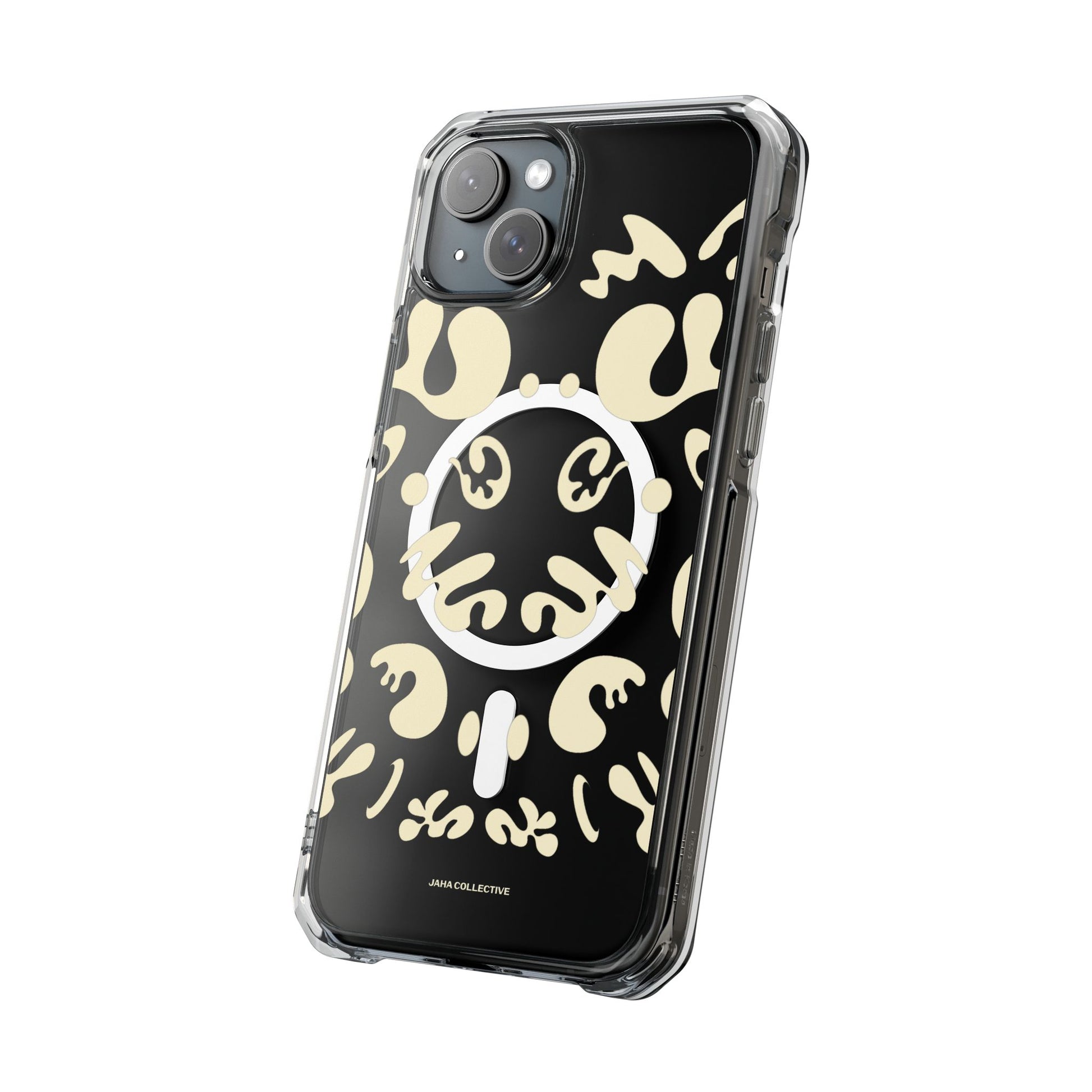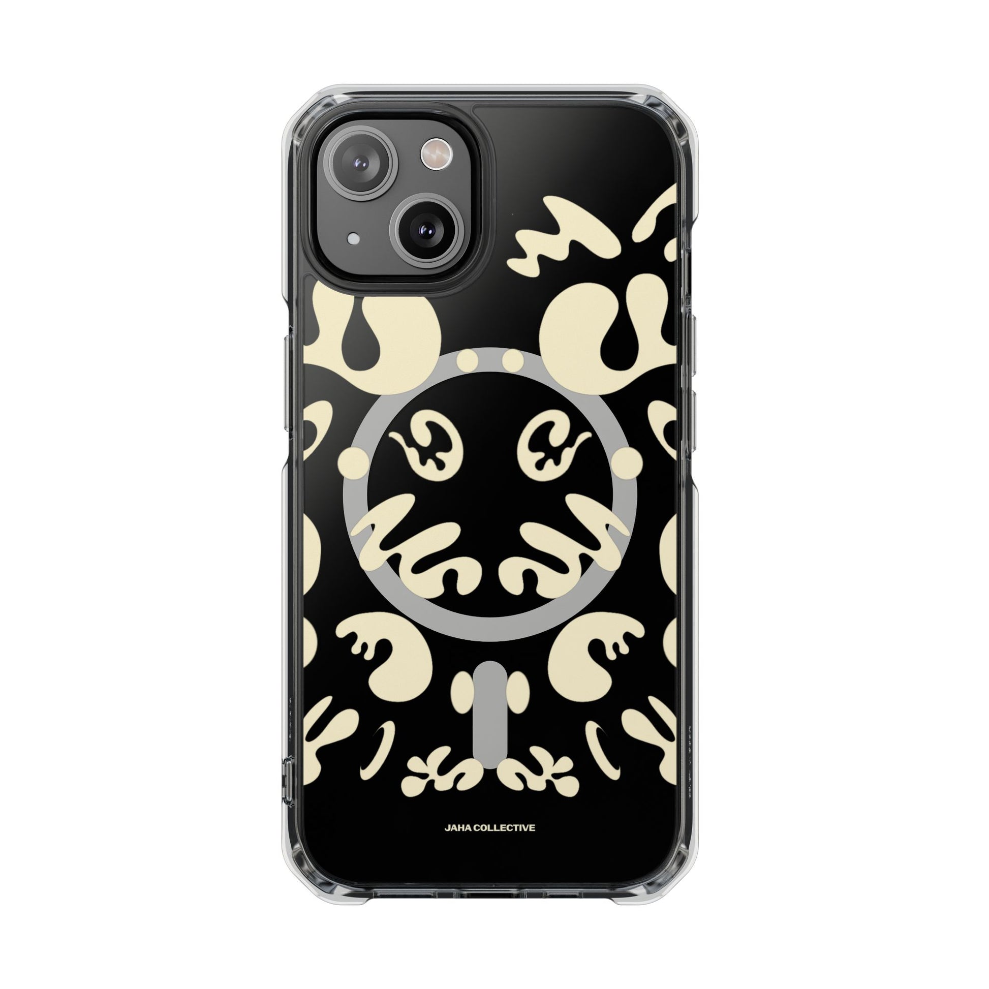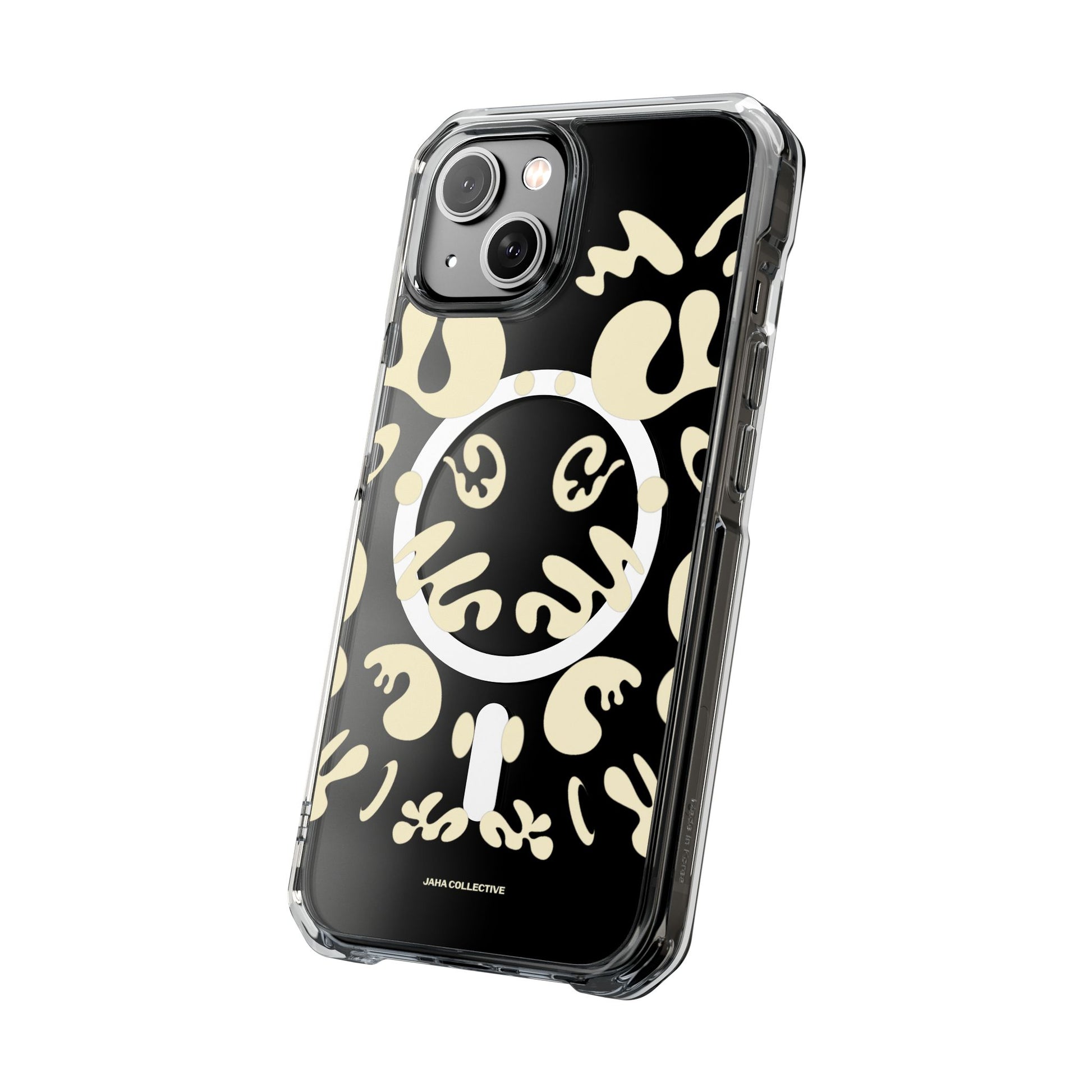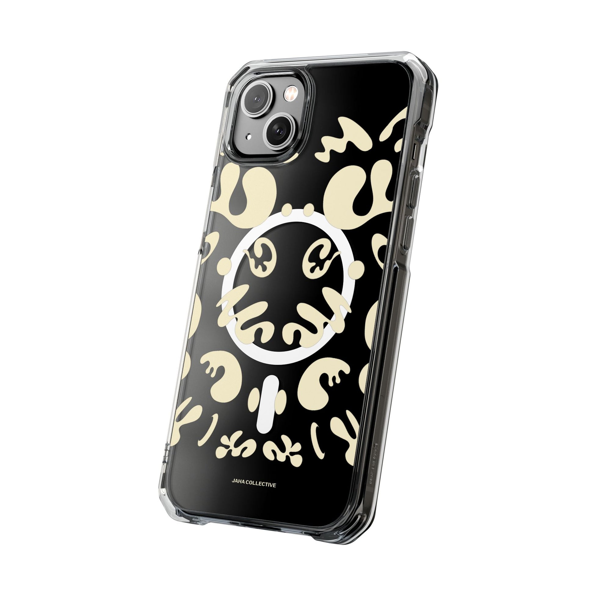 Protect your iPhone 14 or iPhone 15 with this MagSafe®-compatible impact case, crafted from durable polycarbonate and flexible TPU. This elegant and subtle case features an embedded MagSafe®-compatible module for seamless accessory compatibility, air-cushioned bumper corners for superior drop protection, and holes for straps or charms, ensuring both style and functionality.