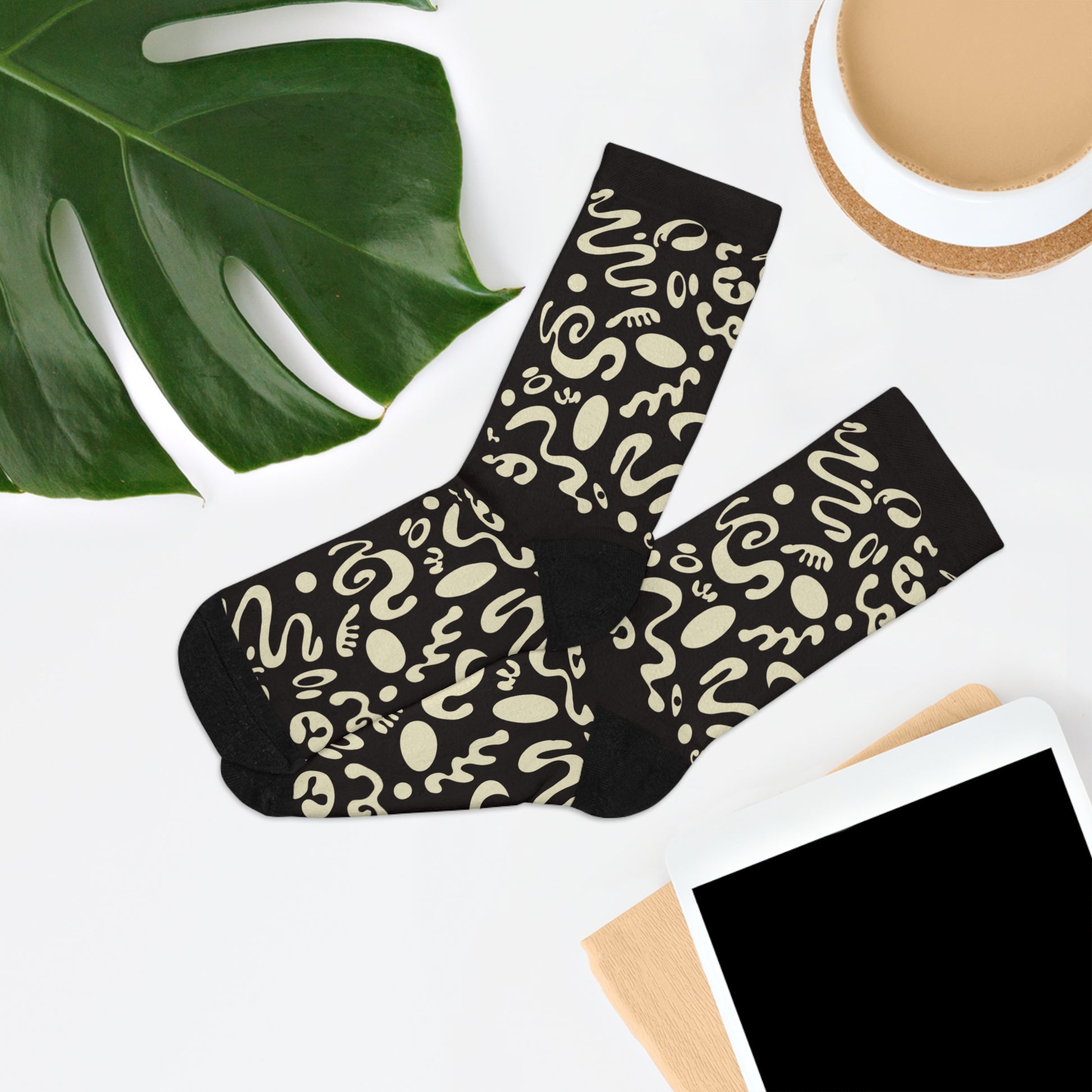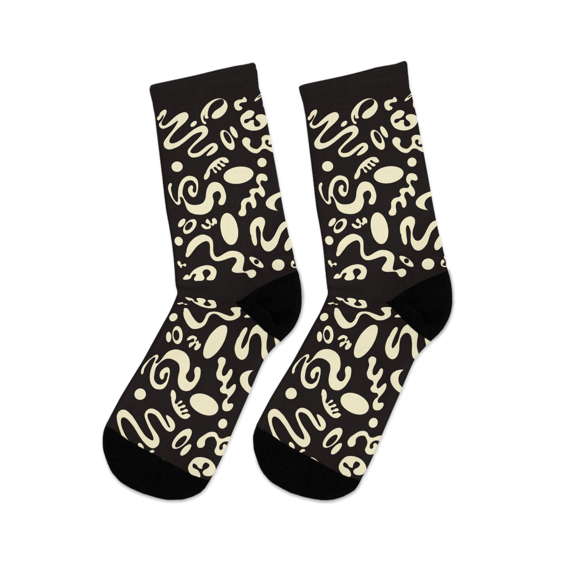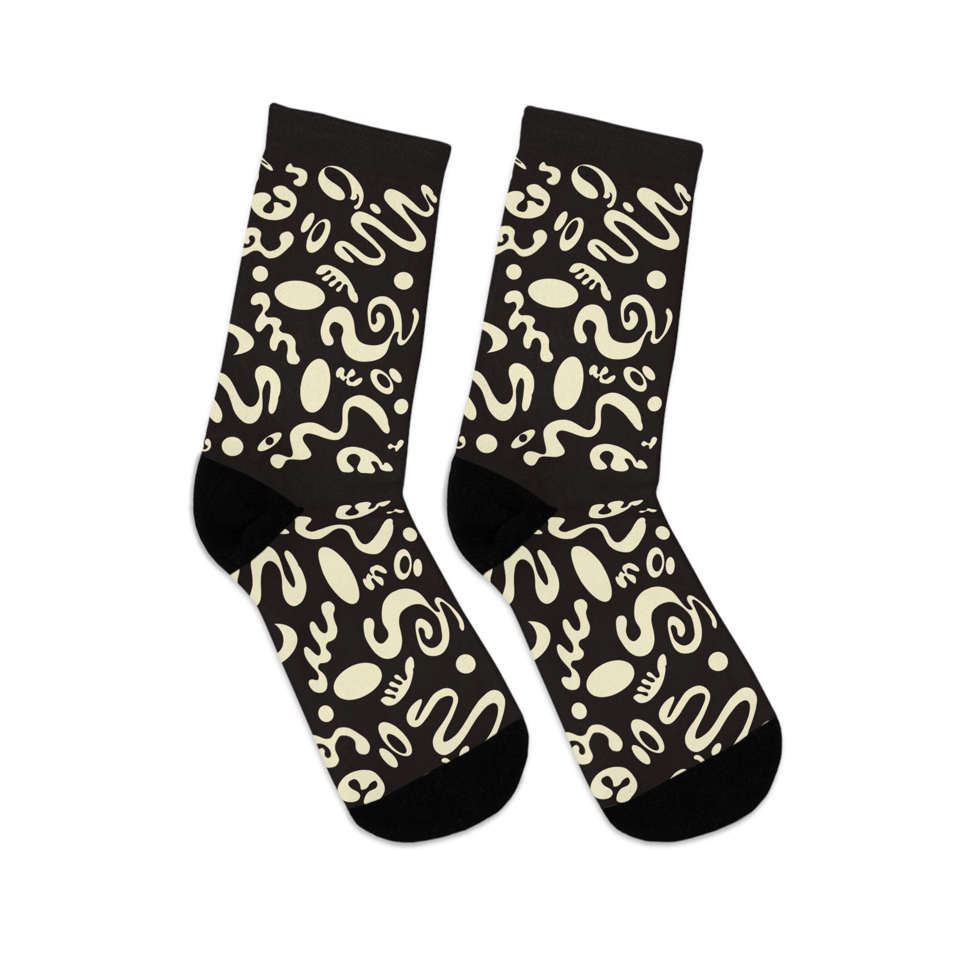 Elevate your everyday style with these vibrant, all-over print socks, perfect for adding a pop of personality to any outfit. Made from over half recycled materials, these socks not only keep your feet cozy but also contribute to sustainability. The 200 needle knit ensures a premium feel, making them ideal for lounging at home or for casual outings. Designed to fit a wide range of sizes, they are perfect for gifts or personal use. Whether you’re celebrating a birthday, cozying up during the holidays, or just want to treat yourself, these socks bring fun and warmth to any occasion. Perfect for eco-conscious fashion lovers and those who appreciate unique and artistic accessories. for Everyday Comfort, Gift for Nature Lovers, Unique Patterned Socks, Recycled Material Wear