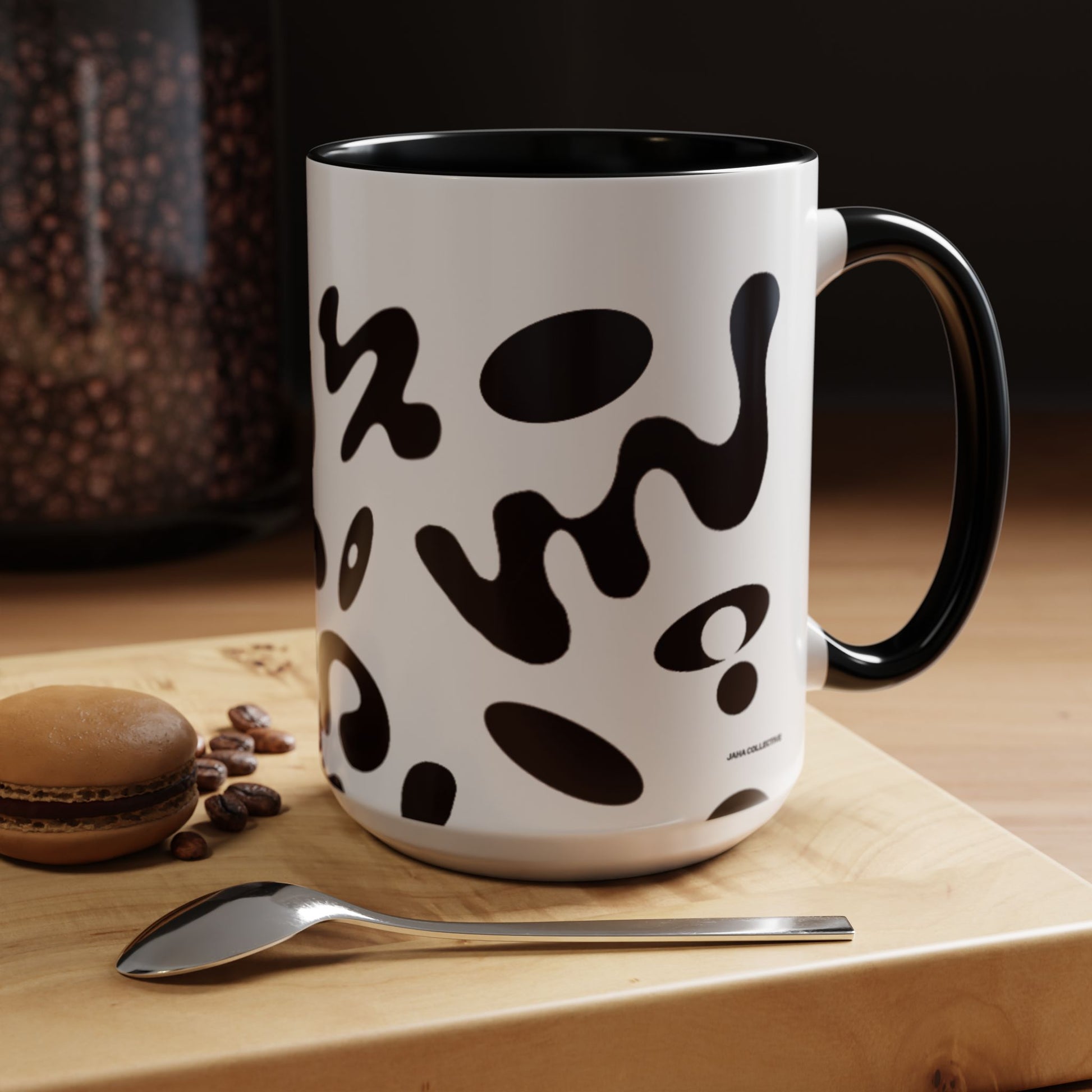 Meet your next favorite morning companion, the accented ceramic mug. This mug brings the perfect blend of style and functionality to elevate your coffee or tea ritual. Available in two generous sizes, 11oz (0.33 l) and 15oz (0.44 l), this mug offers ample space for your favorite brew. Made with white ceramic and sporting a sleek glossy finish with eye-catching contrast, this mug is a bliss both to use and to look at. The ergonomic C-shaped handle provides a comfortable grip, while the lead and BPA-free construction guarantee peace of mind with every sip.