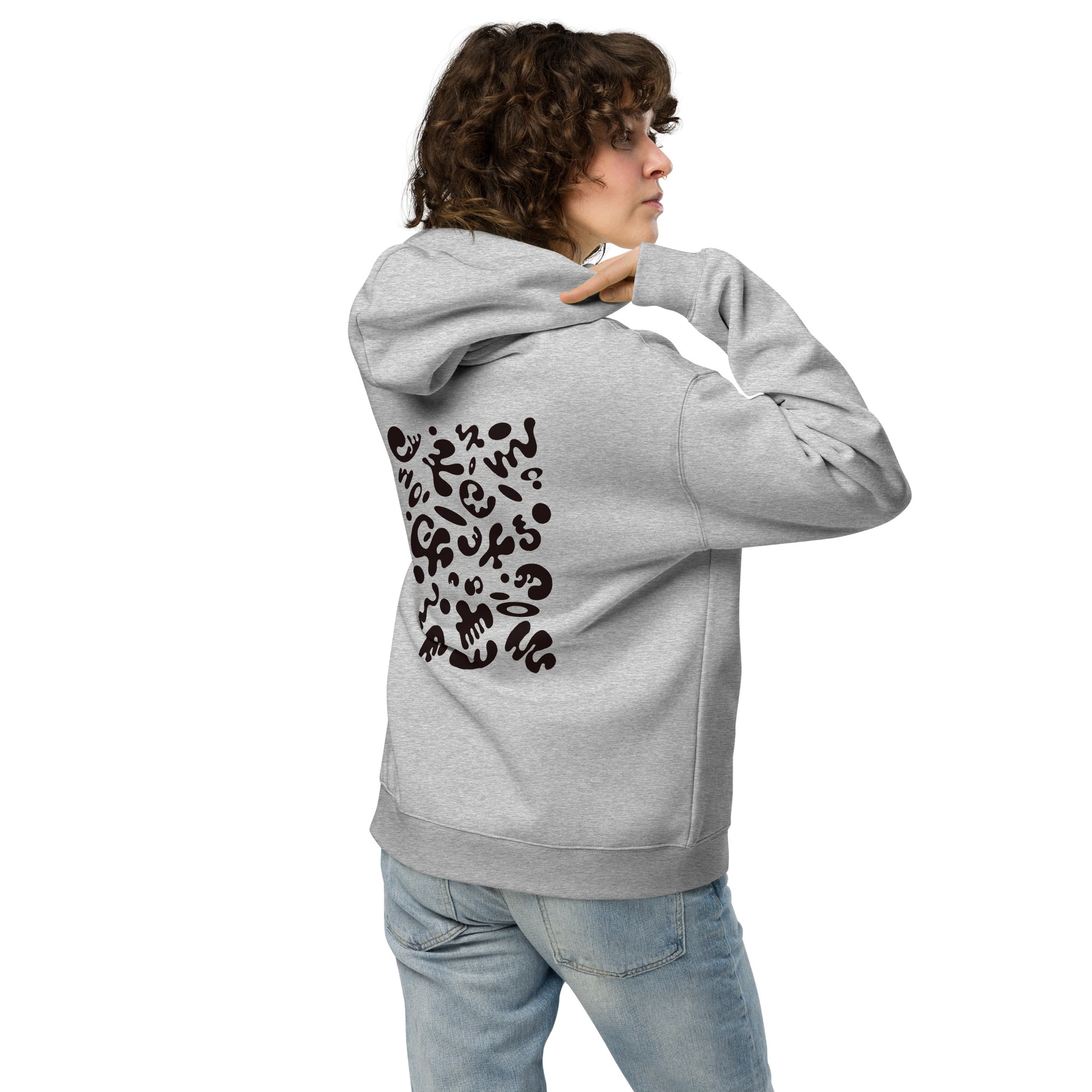 Adorn'd Unisex Oversized Hoodie w Embroidered Logo + Back Print - Smoke Signal Black